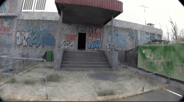 視頻開始以第一視角切入,在户外的這段路,無論是周圍的光線、牆壁、樹木,還是地上的污漬,一切都跟實景拍攝沒啥兩樣。