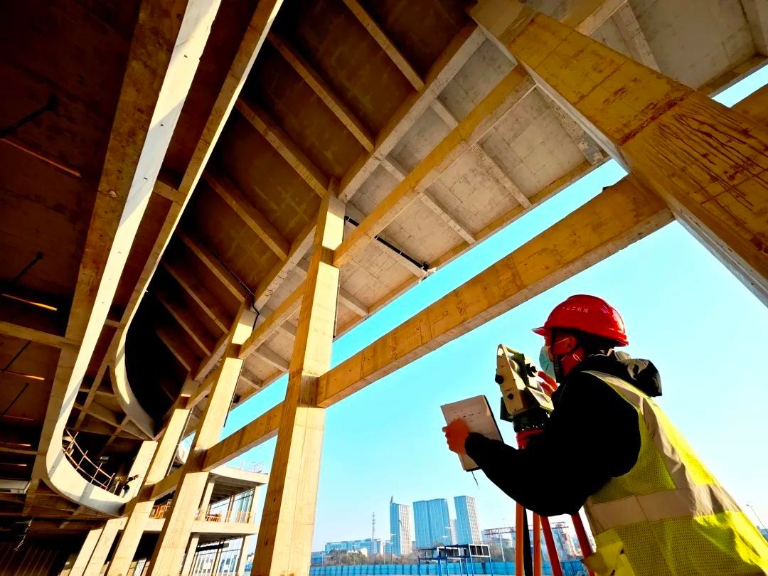 “越是複雜的建築結構,越需要精準的測控數據支撐,就像做衣服需要‘量體裁衣’,如果數據出現誤差,做出來的衣服肯定是不合身的。”樊甘露形象地比喻道。文體中心雙曲面面積達4000平方米,需要確立的檢測點就將近1萬個。如此龐大的施工面積和繁瑣的測控點國內罕見。憶起最初的困難,項目團隊記憶猶新。