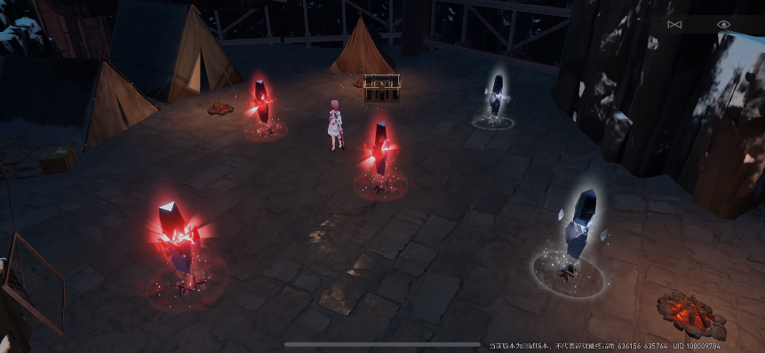 屬性柱子是探索內容主要解謎要素。這一玩法結合了《原神》中元素方碑和風化碑石玩法機制,玩家需要根據柱子顏色使用對應屬性攻擊將其點亮,並在點亮區域中所有柱子後即可完成解謎。