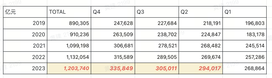 下表是統計局的2019-2023年分季度的不變價GDP。