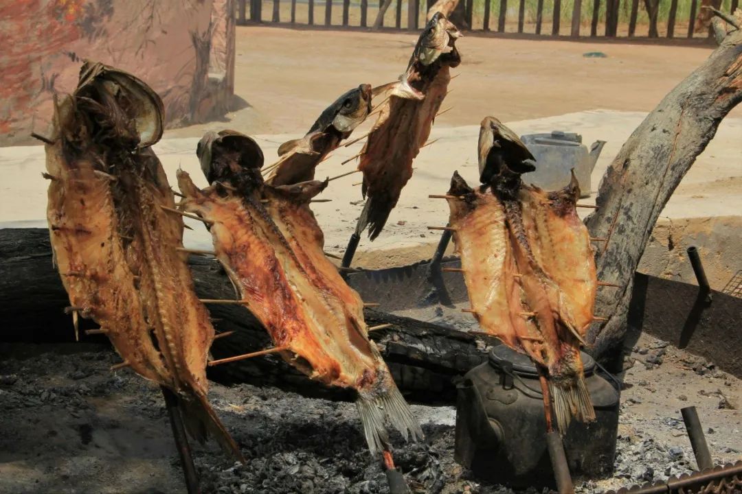 好吃的烤魚一定是用木頭烤出來的,將魚剖開、鋪平,用幾根紅柳籤子固定,撒上秘製的調料,圍着火堆擺放好。