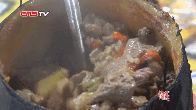 取一整個西瓜,在頂部開一個口,挖去瓜瓤,放入洋葱絲、青紅椒絲,再加入調料和一些中藥材,肉通常選擇羊肉、鴿子肉或土雞肉,塞滿後封口,放入坑裏烤制。