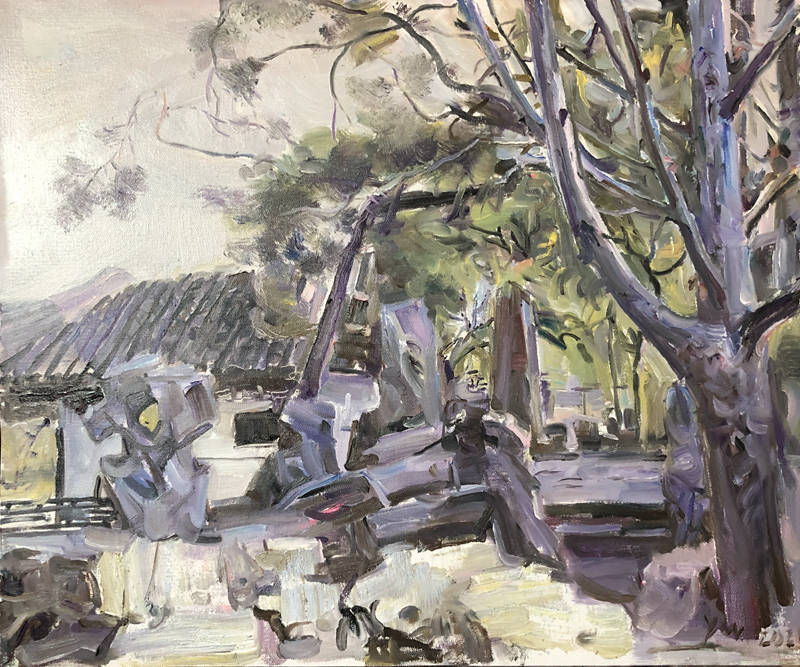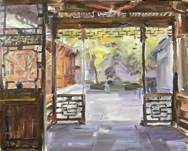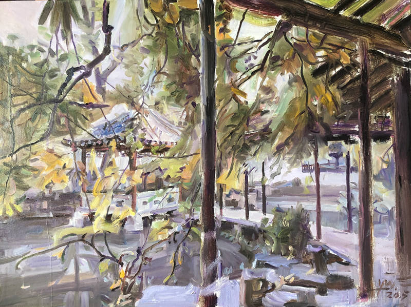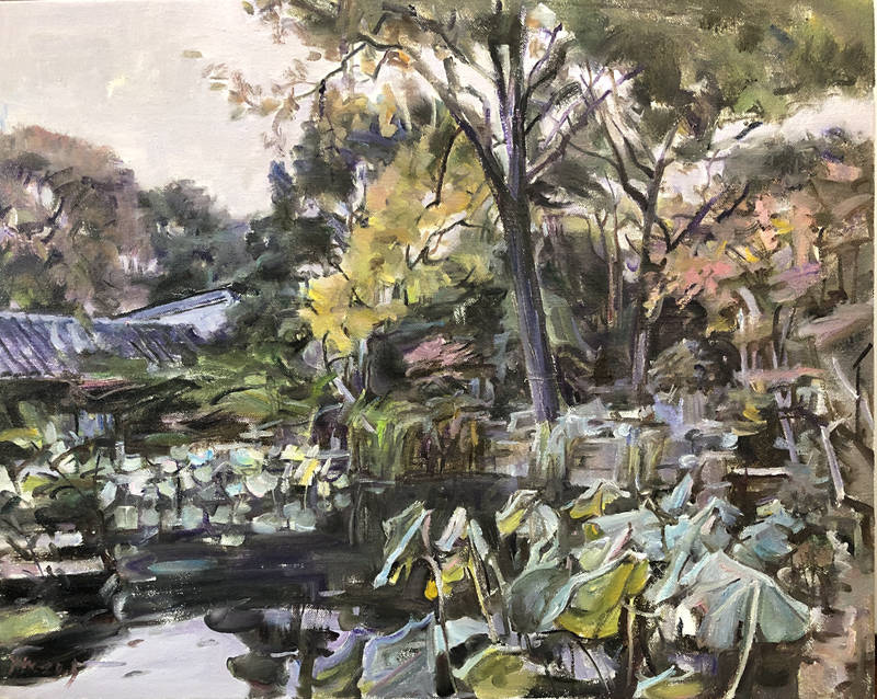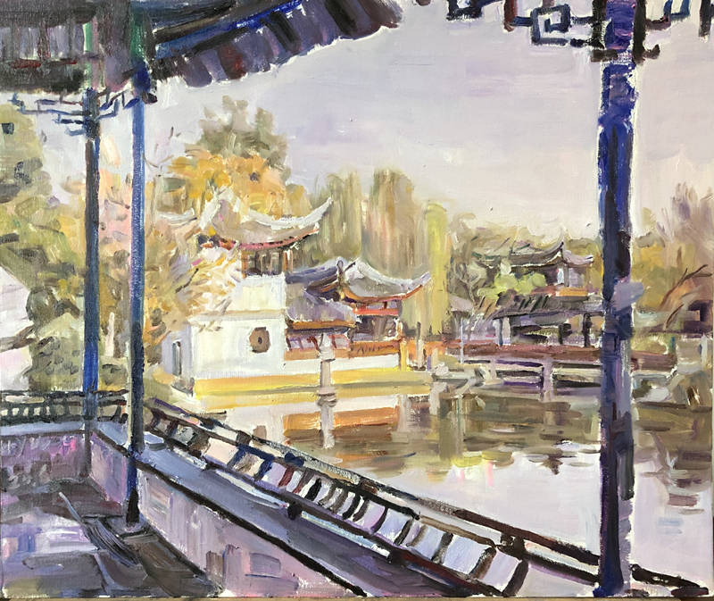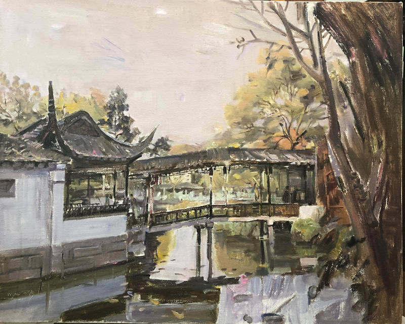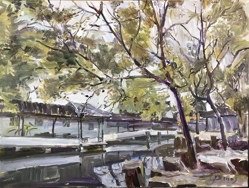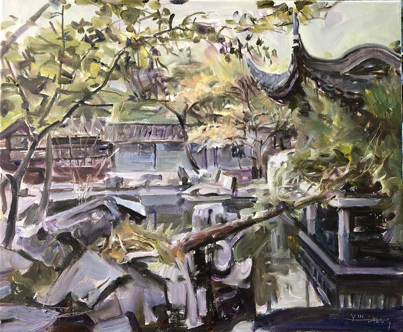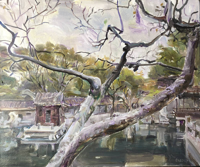 近日又見到他的園林風景,成系列,數量不少,頗有感於心。老耀的“園林”隨意,平和,取景構圖,彷彿有線相隨,彷彿一幀一幀的,隨步而定。讀起來是畫,連起來又是個園子的面貌,是個景,內中卻藏有他的用心經營之處。