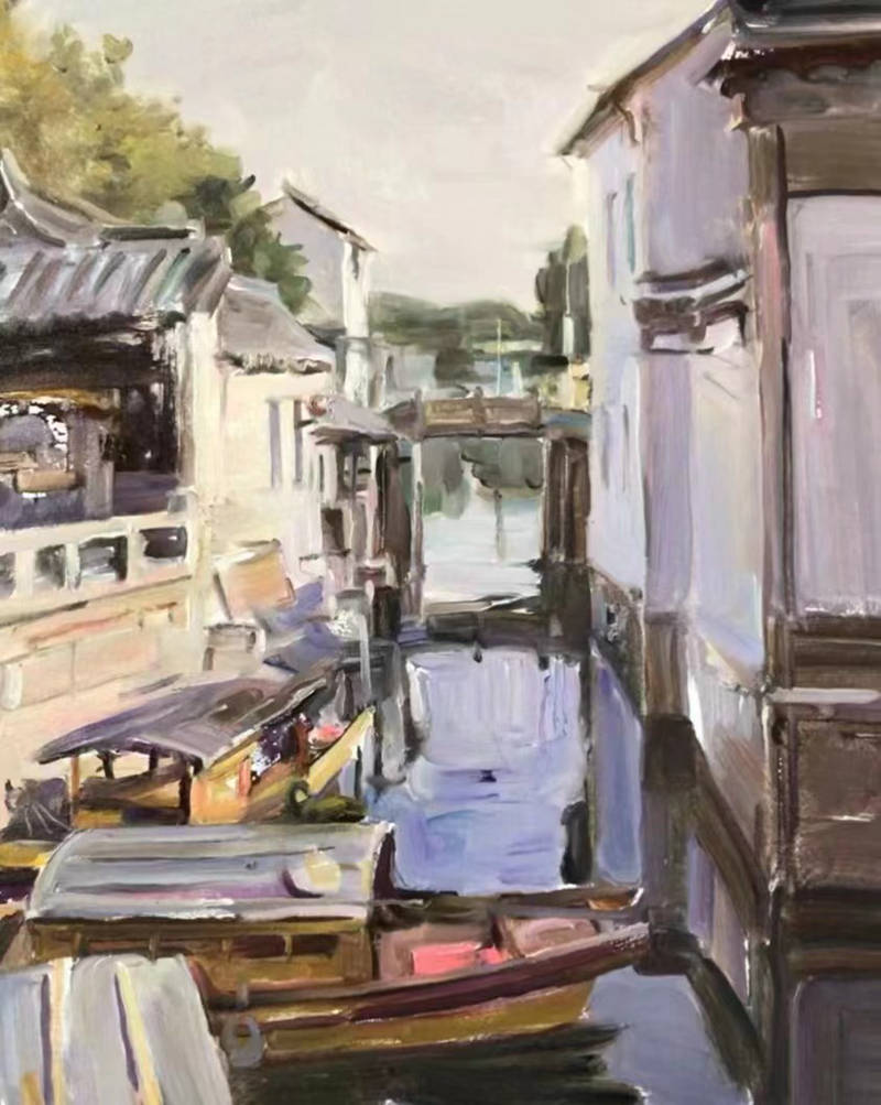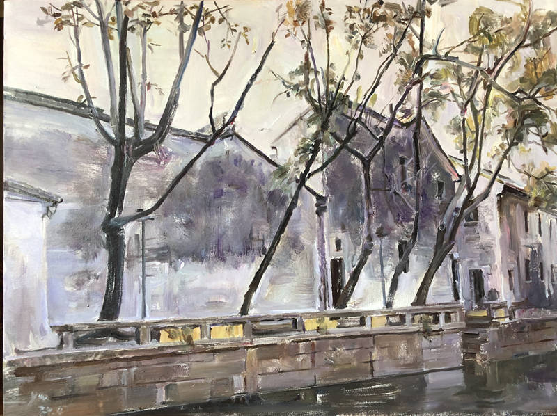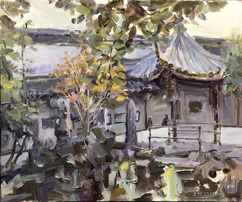 老耀的畫,由青年至今,大多都看過,勤勉,執着。作品多以人物為主,歷史題材,大場面,厚重而富有氣勢,是大油畫的那股味。近年他亦陸續畫了許多風景,出門的多了,伴隨他的腳步與目光,畫出了鄉土風光,歐洲行跡,也有意識地畫了獲得業內好評的《長江葦塘》系列。
