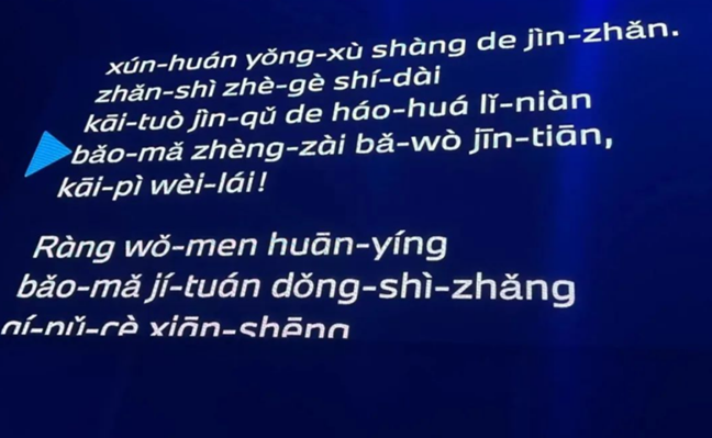 寶馬集團大中華區CEO高樂用略顯生硬的純中文做了一篇簡短的演講,在提詞器上,這位德國人也看懂了漢語拼音。