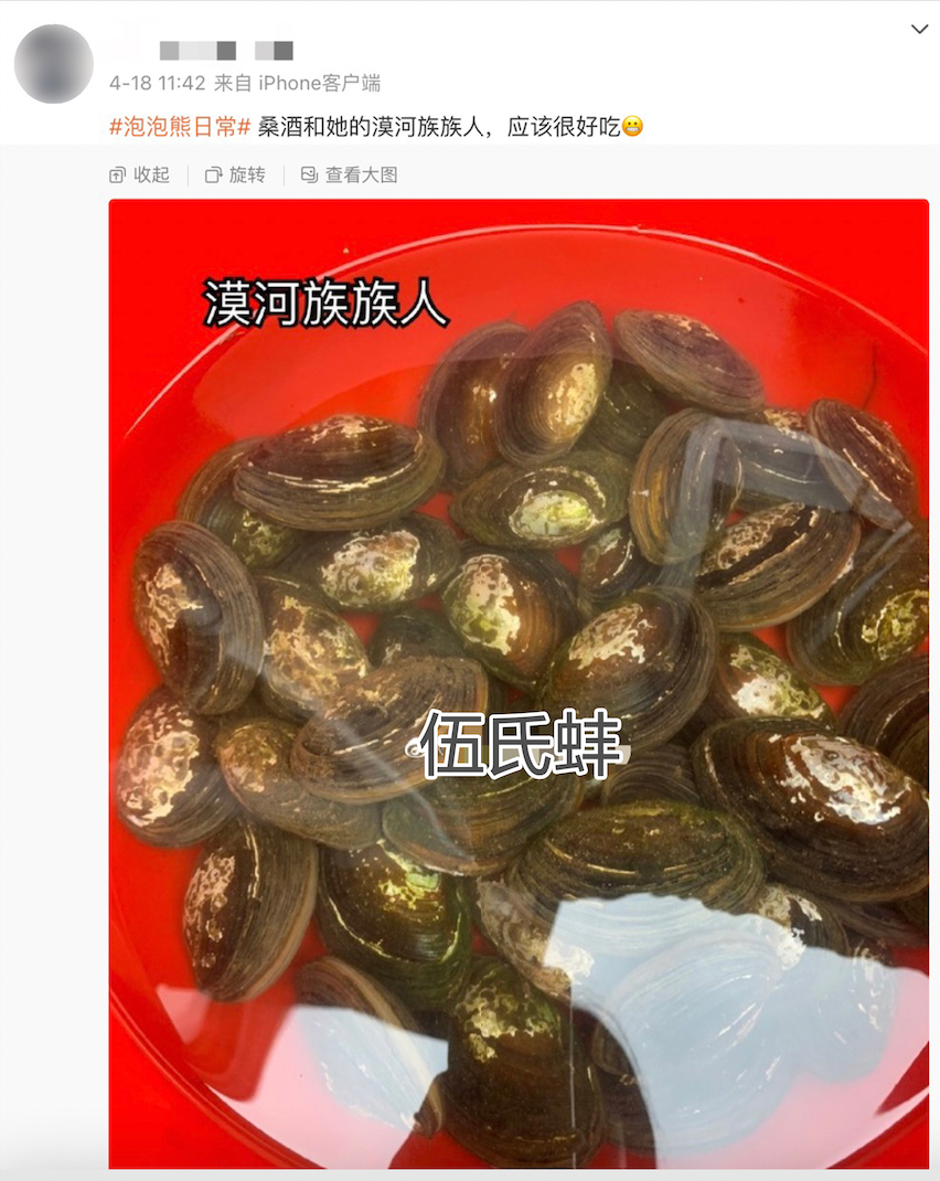 我們邀請貝類學者何徑老師對照片中所涉及的物種進行了初步的確認。其中兩張照片中的物種,都是雙殼綱蚌目蚌科的。在生物分類術語中,科(family)這個分類單元的名字恰好來自“家庭”一詞,從這個意義上説,它們確實是桑酒公主的“家人”。