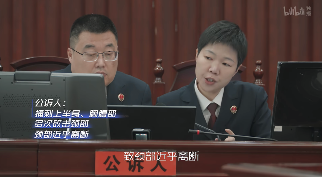 “經依法審查查明:被告人右手持殺豬刀,持續朝被害人頸部砍擊數刀,致頸部近乎離斷。”