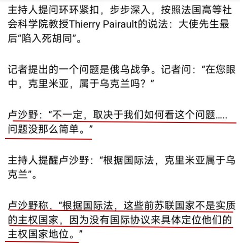 當然了,除了波羅三傻要求盧大使撤回言論外,烏克蘭也要求盧大使撤回言論了,因為在採訪過程中盧大使也提到了克里米亞問題。