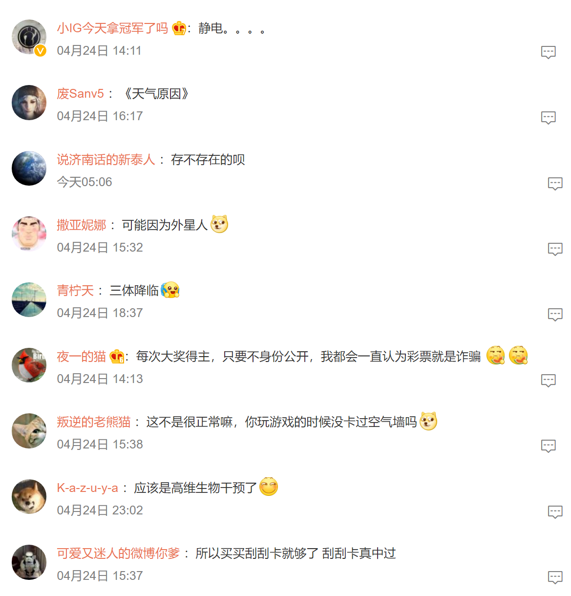 後來搖獎機器的廠家也發聲了,説機器沒有故障。有求知慾比較強烈的網友提出了一個犀利的觀點:是不是乒乓球和搖獎機裏有吸鐵石啊?