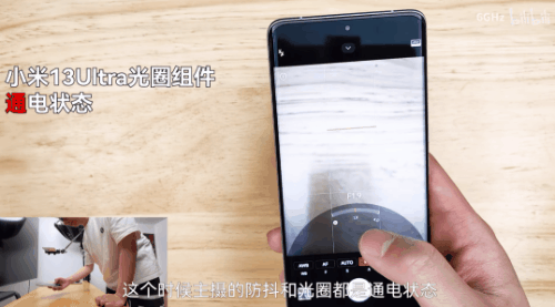 B 站數碼區 Up 主 6GHz 發現,在打開小米 13 Ultra 相機通電的情況下,輕輕敲擊手機,主攝的光圈會被甩動。