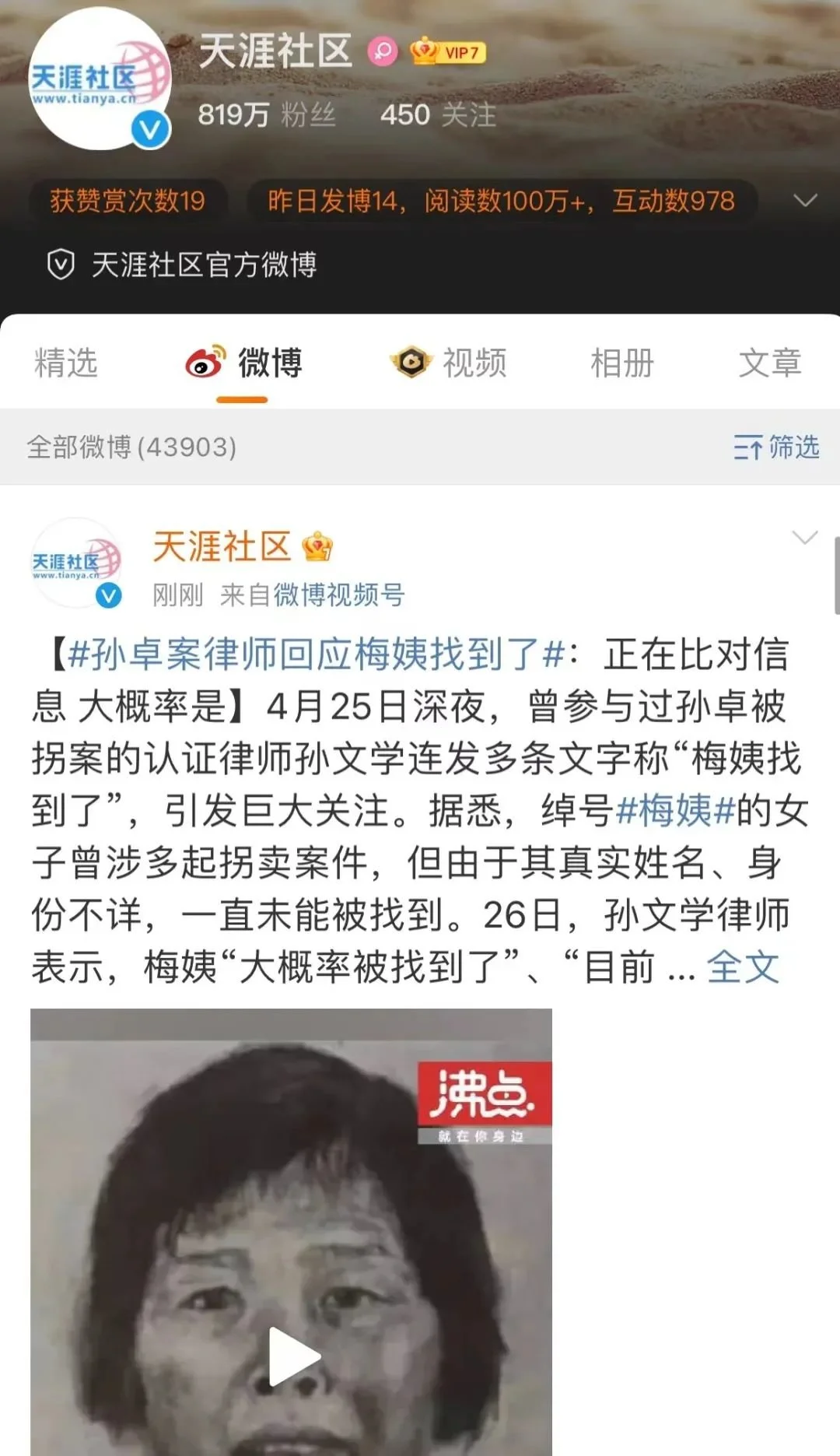 天涯社區的微博仍在更新,但已淪為各類新聞的搬運工。