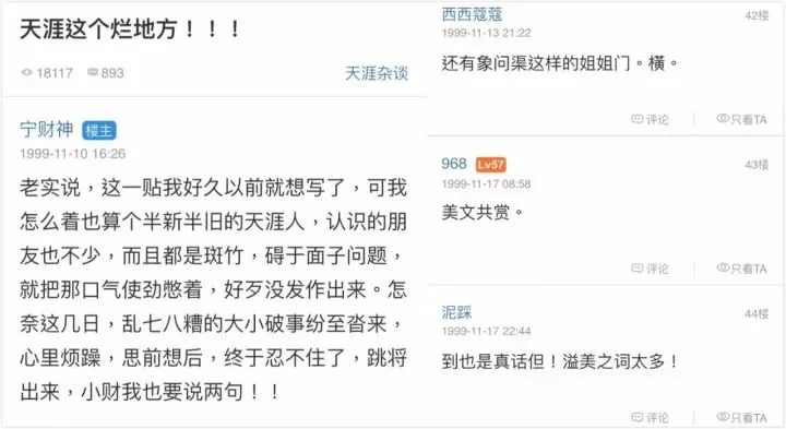 那是一個萬物甦醒的時代,但比起今天來絲毫不顯得簡陋。當年輕的一代網絡原住民在微博的淺水中閒庭信步時,他們的前輩,早就在天涯的海洋中遨遊過了。