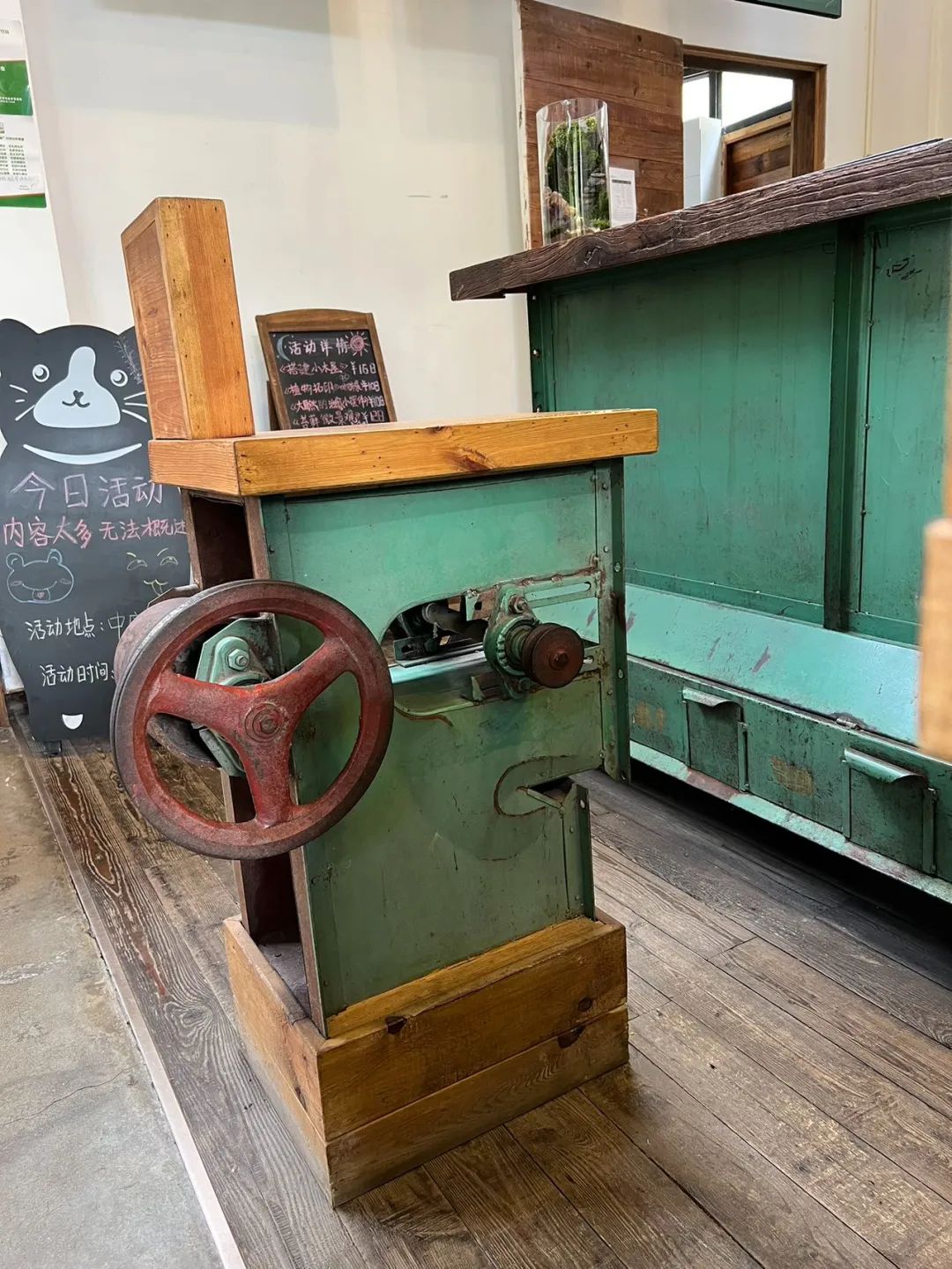 吧枱旁的椅子也很有趣,是某種老式的機器改造的,像是拖拉機的一部分,上面蓋着一塊厚木板,就是一把椅子了。