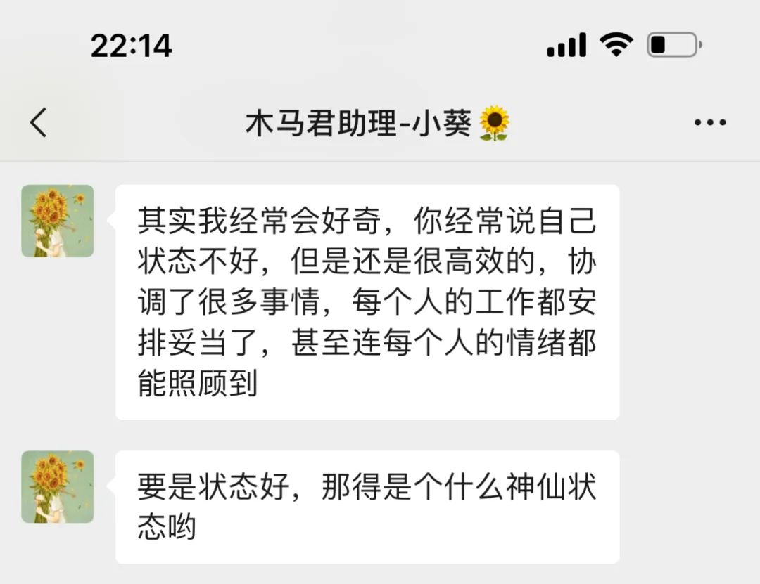 你總説自己現在狀態不好,可是我看你明明很高效啊,什麼事都安排得很妥當,還能照顧到很多人的情緒。那你狀態要是好的話,那得是什麼樣啊?