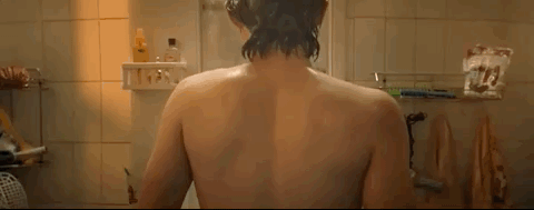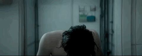 王陽洗完澡照鏡子,從興奮轉向悲痛恐懼。