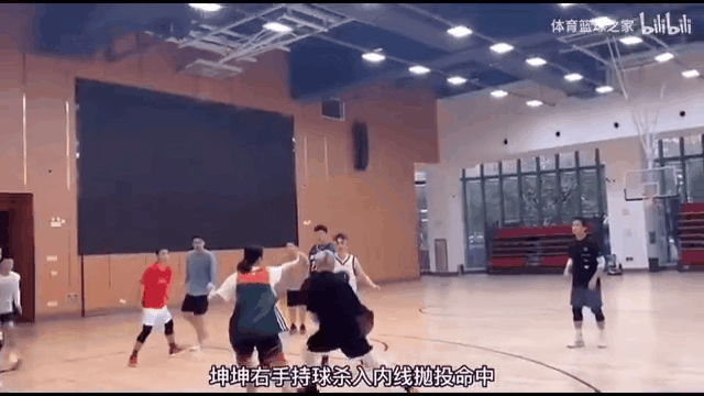 我在海量二創作品裏找到了蔡徐坤的實戰場面,發現他的拋投、二分球的命中率確實不低。