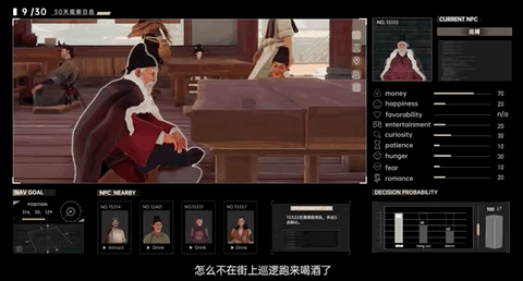 然而,在這個長安城的demo中,由於GAEA系統的存在,NPC的行動不僅會受到彼此之間的相互影響,還會隨着周圍環境、社會的變化而變化。
