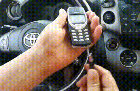 接着,他掏出一台諾基亞 3310 ,用一根 USB 數據線把車和諾基亞連接上( 嗯? ),並摁了幾個鍵。
