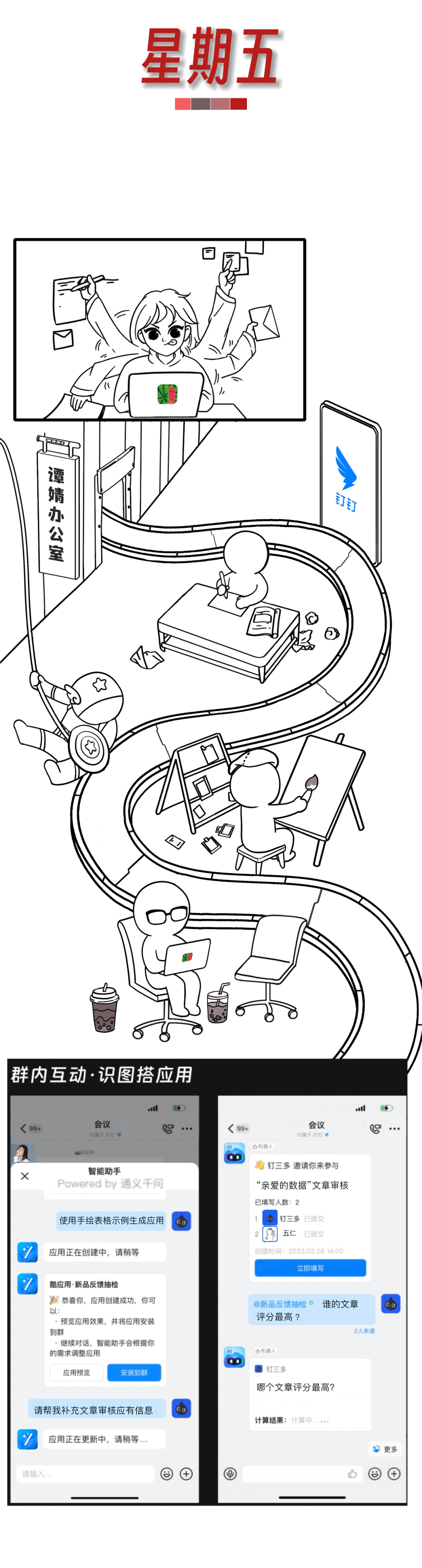 於是,全體五仁男團熱烈歡迎“釘釘大模型新功能”,距離地表最強科技寫稿組,又進一步。
