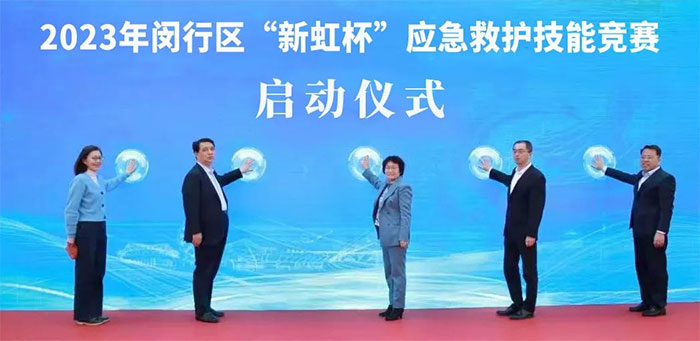 區人大常委會副主任、總工會主席楊其景,上海市職工技協服務中心主任、上海市職工技術協會副會長錢傳東,新虹街道黨工委書記、人大工委主任鬱小明,區紅十字會黨組書記丁鋮惠,區紅十字會常務副會長許沁共同啓動競賽。新虹街道黨工委書記、人大工委主任鬱小明發表了熱情洋溢的致辭。