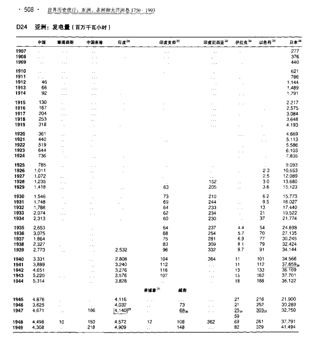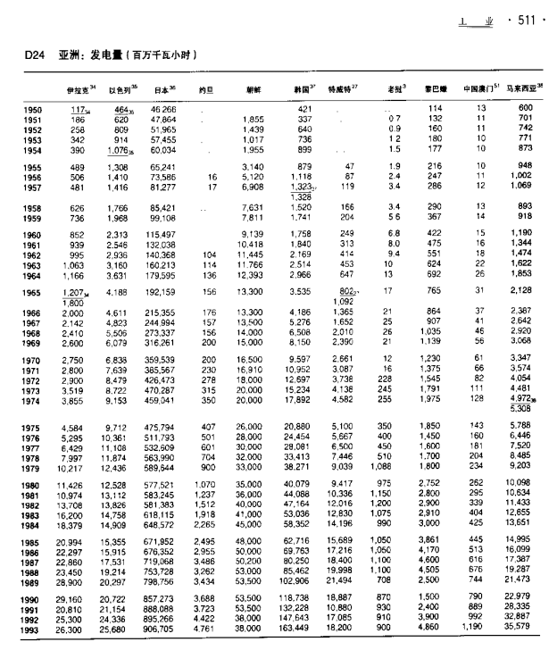 而解放前包括整個東北的中國發電量,也始終都只是日本的一個零頭,甚至低於日本重點扶持的殖民地朝鮮。即使1949年前後就得到蘇聯大規模援建,但也直到朝鮮戰爭爆發之後才超過朝鮮,而且又是在1996年最終超過了日本。