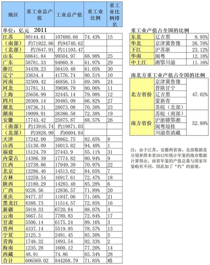 《中國統計年鑑2012》最後一次統計各地區輕重工業數據
