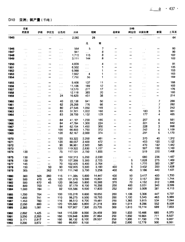 即使在二戰後日本的廢墟期,包括東北在內的中國全部鋼產量也只是日本的一個零頭,甚至還遠落後於印度。直到1996年中國的鋼產量才超過日本。
