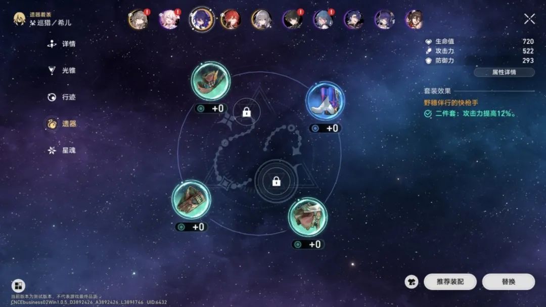 不同角色有各自的技能、天賦、終結技,你需要在提升人物、技能等級的同時,為角色搭配不同的“光錐”和“遺器”(相當於武器和裝備),另外,重複抽取到同一名角色也可以解鎖對應的“星魂”,從而獲得更強力的被動技能。
