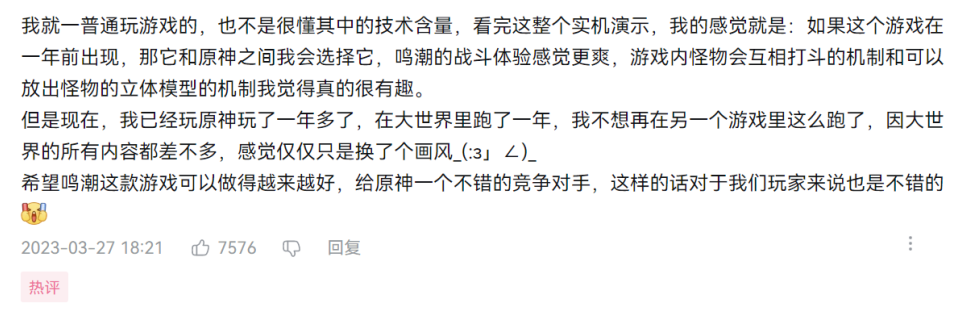 從玩家個人的角度上看,評價遊戲的優劣是個相對主觀的行為;但對《星穹鐵道》來説,無論是地圖場景、過場動畫這些人人都能看出工作量的設計,還是細節上文本、世界觀以及劇情的處理,至少都向玩家呈現出了在整體層面的優勢,如果最後能得到玩家的認可,我想也不是什麼多麼驚訝的事。
