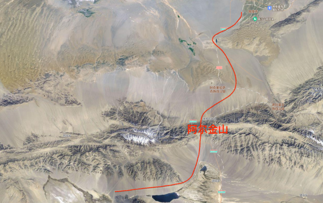 不過我沒在那裏呆,第二天繼續上路,過了阿克塞之後,翻越阿爾金山,沿途風景非常好,近處是沙漠,遠處是雪山。