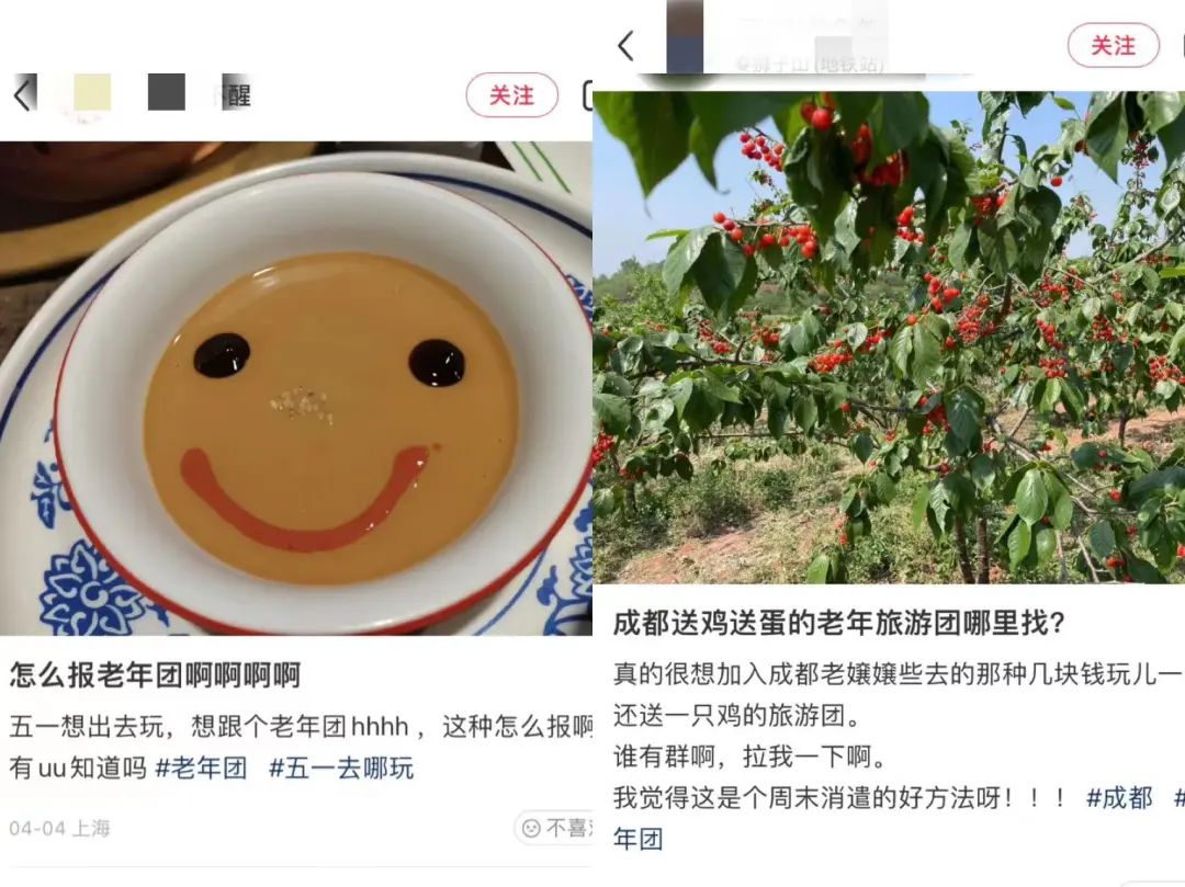 小紅書上也有很多相似的筆記,**不到100塊錢的崇州一日遊,旅遊結束後竟然還送了100顆蛋,**老年人和藹可親,會關心人、幫助人,而且和他們的年齡不相符的是,他們旅遊的時候精力非常充沛,“下車拍照遊玩,上車聊天唱歌,休息什麼的,那是年輕人才需要的。”