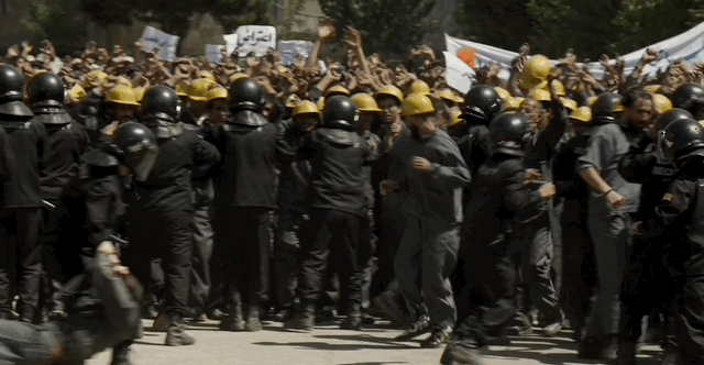 而結尾,阿里雷扎不接受工廠明明拖欠了1年薪水,卻僅賠付3個月工資就想了結的方案,他憤怒地砸碎了那扇彷彿象徵着逆來順受、息事寧人的玻璃門。