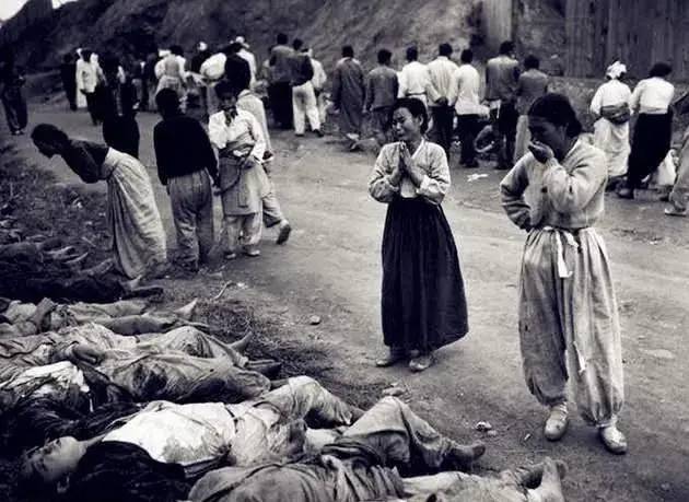 “在漢城南部90英里處,有一條山谷,這裏有7000左右的人被屠殺。事情發生在1950年7月,關押在大田監獄的左翼人士、共產黨員被用大卡車拉到這裏,每個犯人都身穿白色的衣服,被反綁雙手,面對山谷下面的土溝,站成一排,然後警察從後面朝他們的後腦勺一起開槍,槍聲過後,一排屍體全都跌入山谷。就這樣,最後屍體堆滿了六條一英里長的深溝。當時一名美國軍官曾經前往看到了這一幕,他説那是一個“宰火雞”的血腥場面。”在山谷之中,每個犯人都身穿白衣,他們的雙手被鐵絲捆在身後。犯人們低頭彎腰,面朝着土坑等待着自己的宿命。韓國軍人和警察,成排地站在犯人們身後,開始朝着犯人的後腦射擊。犯人被擊斃後,屍體栽倒在挖好的土坑中。“有不少犯人並不是共產黨員,他們是被捉來的普通平民。這些人本不該被殺,他們連共產主義的概念都搞不懂。”