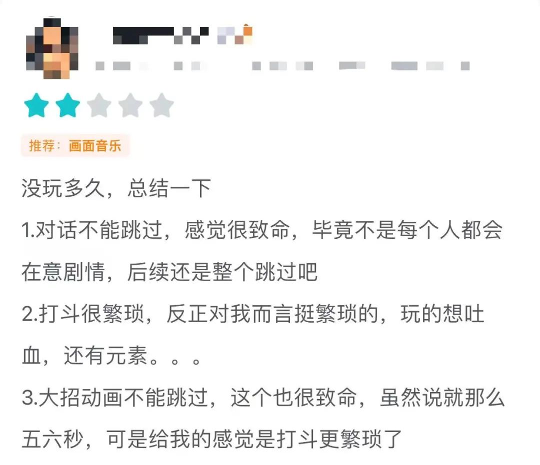 然而,一道製作理念與玩家需求間的鴻溝卻悄然產生了。如果翻翻評分平台,大部分吐槽就集中在“又臭又長,可玩性差”。