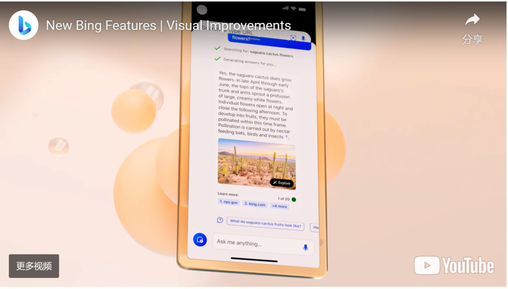 通過從有限預覽轉變為開放預覽並消除試用候補名單,向更多人開放Bing。從純文本搜索和聊天轉變為具有豐富圖像/視頻答案的更加直觀的搜索和聊天,並且即將推出新的多模式支持。從單一使用的聊天/搜索會話轉變為具有聊天曆史記錄和Edge中持久聊天的多會話生產力體驗。開放平台功能,以便開發人員和第三方可以在Bing之上構建,幫助人們對他們的查詢採取行動並完成任務。