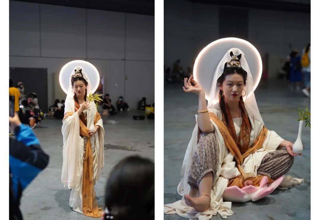 要説今年cp展,最火爆的,當屬這位自帶光環的觀音菩薩。她手持淨瓶,寶相莊嚴。