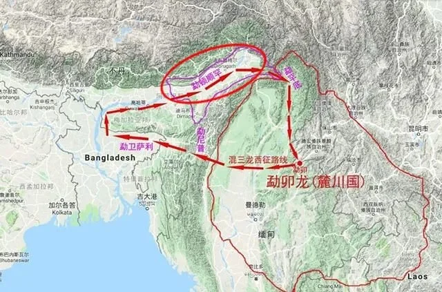 從大理國分裂出來的另一支泰老民族先民,一路跋涉到印度東北部的布拉馬普特拉河北岸,在1228年建立勐頓順罕國,當地人稱他們為“阿薩姆”,也就是今天印度泰族的祖先。