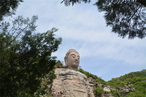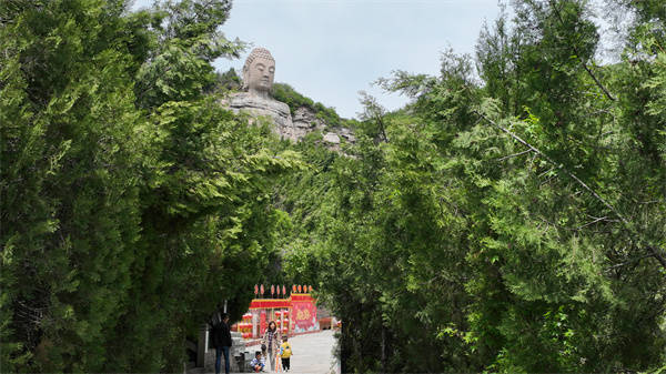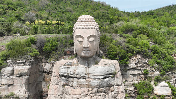 直到上世紀八十年代,地名考察時,王劍霓老人經過多番實地考察確認蒙山大肚崖就是曾經的西山大佛所在處。清理周圍的泥石沙土後佛身果然顯現。在07,08年根據北齊佛雕頭像特徵補塑了佛頭,佛頭是由山體拖起,就地澆築而成的,佛身並不承重。至此,消失六百餘年的大佛再現人間。它雙手施禪定印,雙腿結跏趺足而坐,神色莊嚴而安定,雄健中透出儒雅之氣,沉思中顯得堅定不移,莊重裏藴含大慈大悲,令人肅然起敬。蒙山大佛在佛教中佔據怎樣地位呢?首先它是釋迦摩尼本尊佛,這一點由造像可以看出。釋迦牟尼佛為結跏趺坐式,彌勒佛為倚坐式,如樂山大佛。阿彌陀佛為站立式,如阿富汗的巴米揚大佛。在這三尊佛中,樂山大佛和巴米揚大佛都是民間力量所為,樂山大佛是為了鎮水保平安而鑿,雖比蒙山大佛高8米卻晚了162年。巴米揚大佛更是不僅開鑿年代不能確定,還在2001年被塔利班政府毀壞,不復存在。蒙山大佛卻是由皇家修建的護國大佛,耗盡了北齊的國力。蒙山大佛是目前世界上有確切年代記載的開鑿最早的摩崖石刻佛像。大家環顧四周看看周圍山體,有猜想稱蒙山大佛實際上為羣佛,至於究竟是北齊王朝太短暫沒有鑿完還是與大佛一起經受風雨與戰火毀壞了就不得而知,至今仍是一個謎。