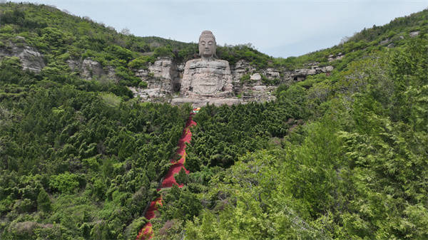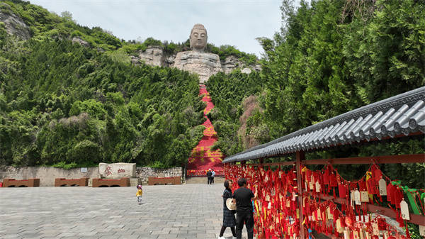 蒙山大佛景區位於太原市中心區西南約15公里處,佔地面積約8平方公里,主峯海拔有1325米。蒙山大佛距今約1470多年,為結跏趺式釋迦牟尼坐像,高63米,開鑿於北齊天保二年,是有確切紀年,開鑿最早的摩崖石刻佛像,比著名的樂山大佛還要早162年。