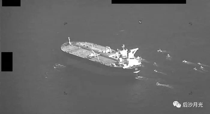 美國海軍公佈了無人機拍攝的畫面,大約十幾艘伊朗船艦圍住了這艘油輪。但美國海軍也沒有採取行動。