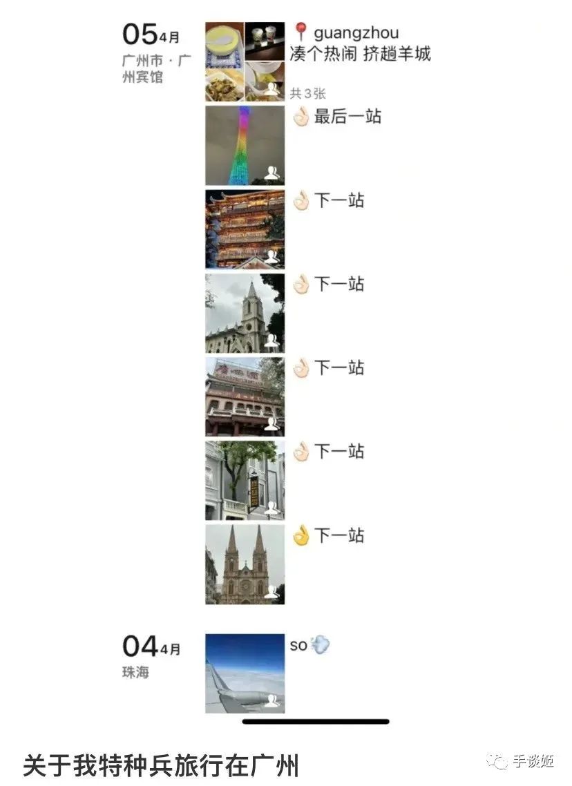 柟多多的“閃現”式朋友圈,激發了一些羣友的創作熱情,“閃現”自然是源自於MOBA中的用法,類似的朋友圈旅遊用法在微信有自我定位功能的時候,就已經有很多人這麼用了。