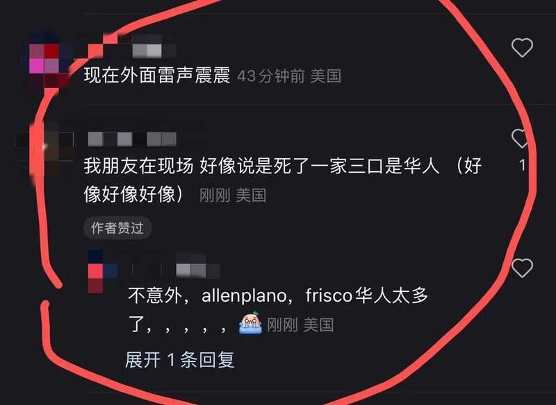 在小紅書上,有網友表示,現場有華人一家三口遇難,視頻顯示的受害者中,確實有亞裔臉孔,目前警方尚未公佈受害者身份。這起事件目前還在調查之中!艾倫是達拉斯地區除了Plano以外,最受華人喜歡的城市,對華人帶來的衝擊無疑是巨大的。