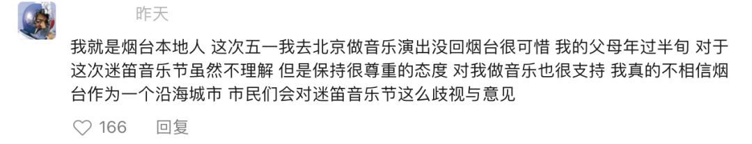 情況甚至誇張到,連煙台市萊山區文旅局負責人出來給迷笛站台,都要先把視頻的評論區關了: