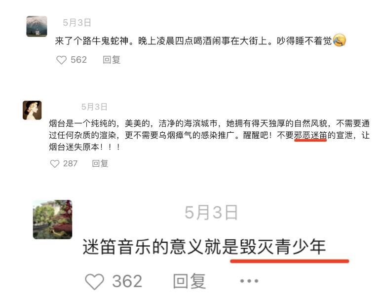 文明一點的,説迷笛的內核與煙台無關,甚至不符,不希望煙台以這種形式被推廣,不是正能量,希望政府部門嚴加審核。