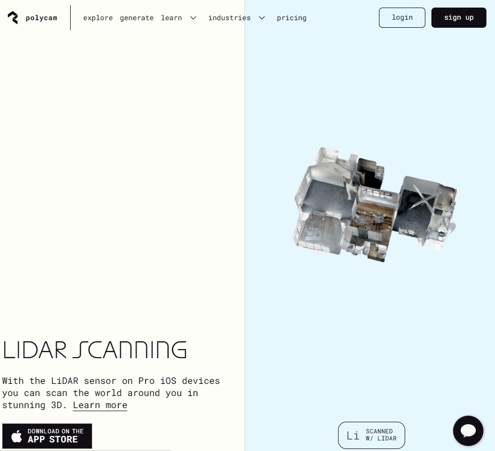 其實像 LumaAI 這種做 3D 重建的軟件也不少,在 AppStore 裏的 Polycam 就能通過蘋果自帶的雷達掃描,來估算距離和點雲信息,從而重建出一個 3D 場景。
