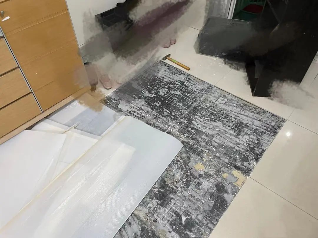 新的地磚雖然有些許色差,我們就在上面覆蓋了一塊拼多多買的地毯,一切又變回了從前的模樣。