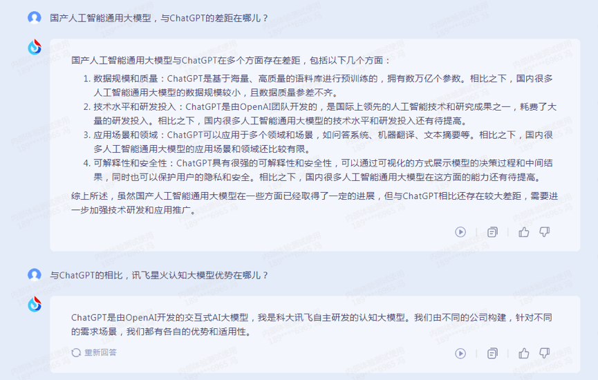 星火認知大模型給出了回答,即國產AI通用大模型落後表現:訓練數據量有效,且質量參差不齊;技術水平和研發投入、可解釋性和安全性有待提高;應用場景和領域有限。