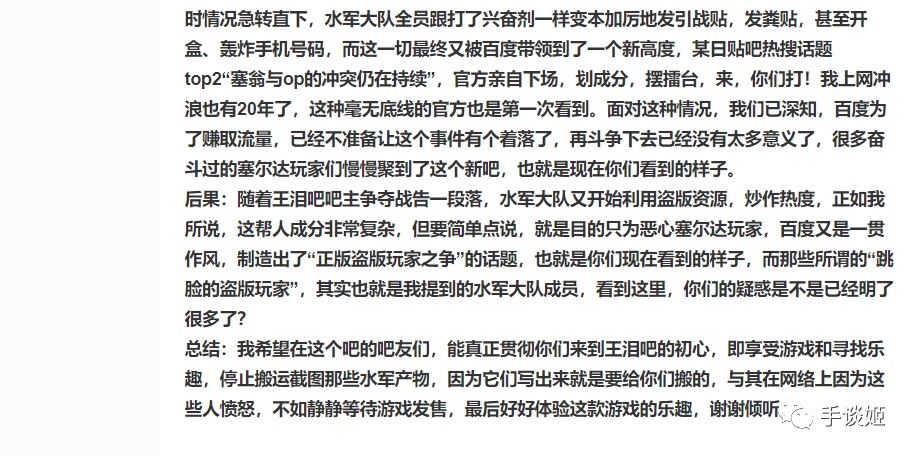 此外,貼吧本身也難辭其咎。在一些管理比較正常的貼吧裏,如果發佈明顯引戰的帖子,下場很可能是會被吧主、吧務刪除,但是在王國之淚貼吧中,目前正處於無人管理的混亂狀態,為了能擁有一個正常的討論環境,一些玩家開設了“新王國之淚貼吧”來圖一個清淨。