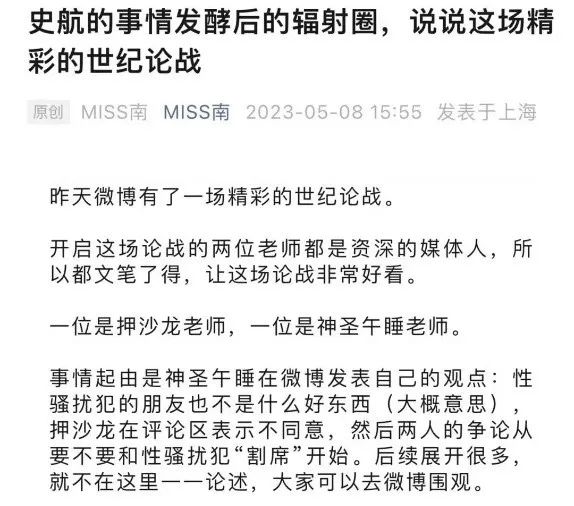 多名妹子指控史航騷擾,於是有網友討論“割席”,就是要求那些認識史航的網友,站出來表態。