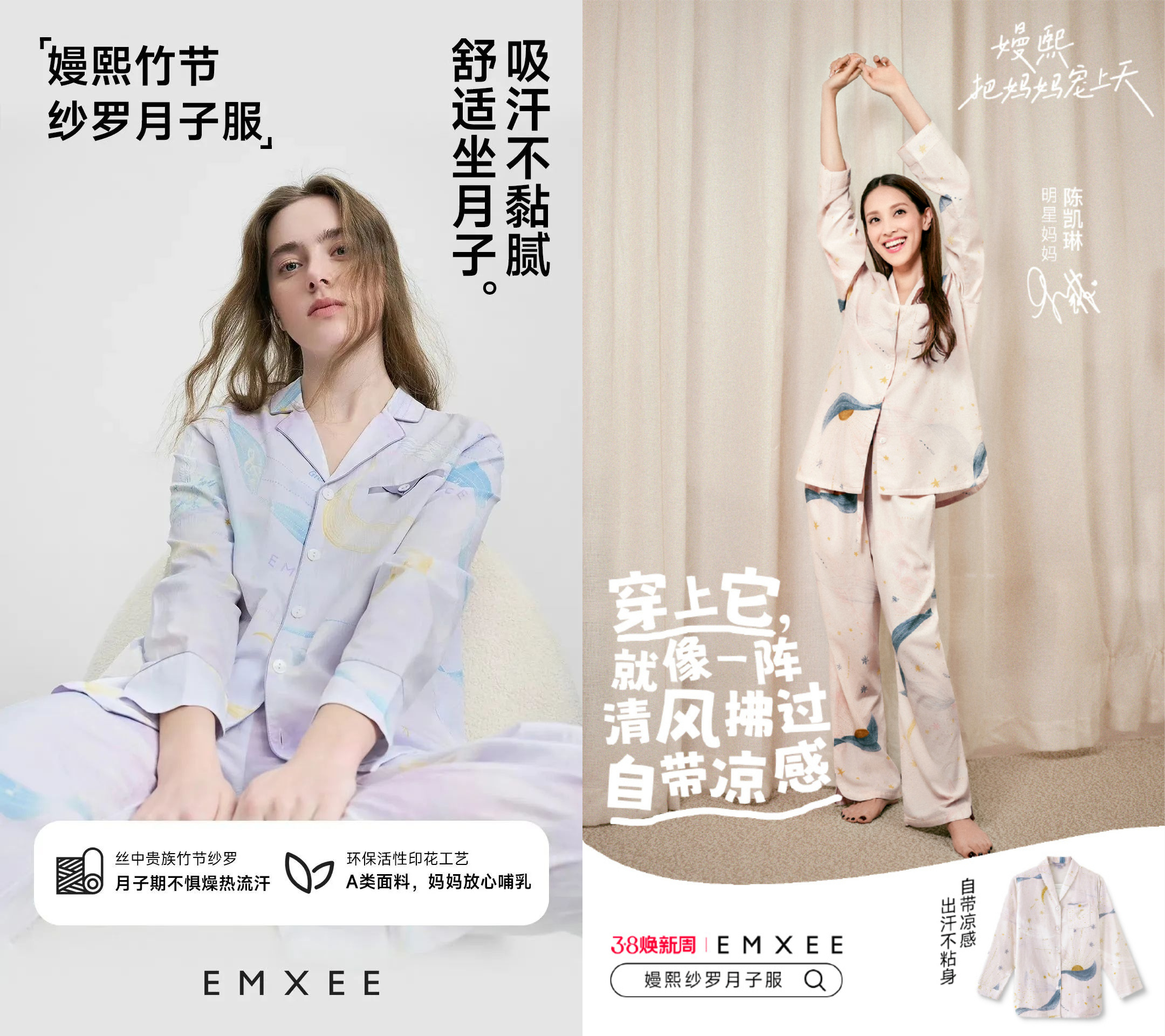 以母嬰人羣為例,夏天容易悶熱出汗,但媽媽&寶寶又因為怕着涼不敢吹風。針對這個痛點,嫚熙推出竹節紗羅系列服飾,獨有紗羅工藝和竹節纖維面料實現透氣輕盈,不吹風也清爽;在版型跟印花上,與藝術家合作,為用户提供不負重的居家藝術情緒價值。